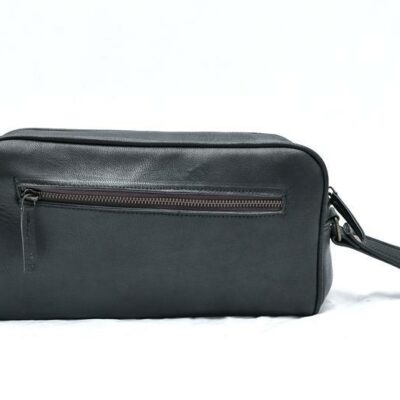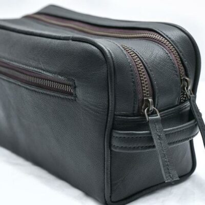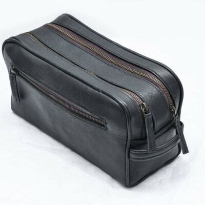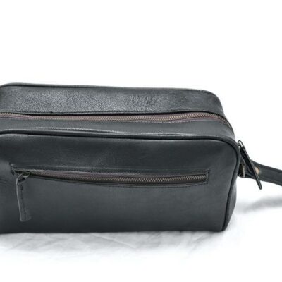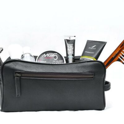 Keep your all grooming products organized and accessible with this stylish black leather toiletry bag. Whether you?re going globetrotting or heading to the travel and gym, this essential small leather piece of kit will help you organize your things easily so you can take them with you wherever you go.